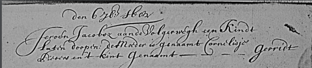 • Cornelis Jeroensz Cooijman, gedoopt 16 april 1684. De familie woont aan de Volgerweg in de Beemster.