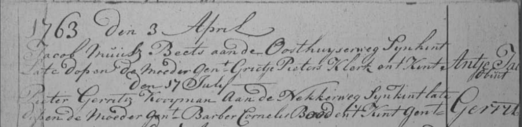 • Gerrit Pietersz Cooyman, gedoopt 17 juli 1763 in de Beemster