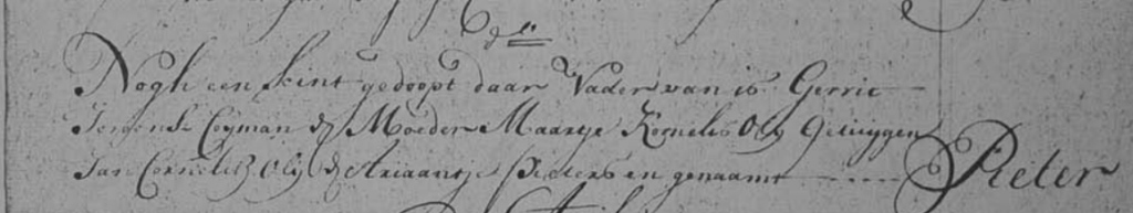 • Gerrit Pietersz Cooyman, gedoopt 9 mei 1756, jong overleden.